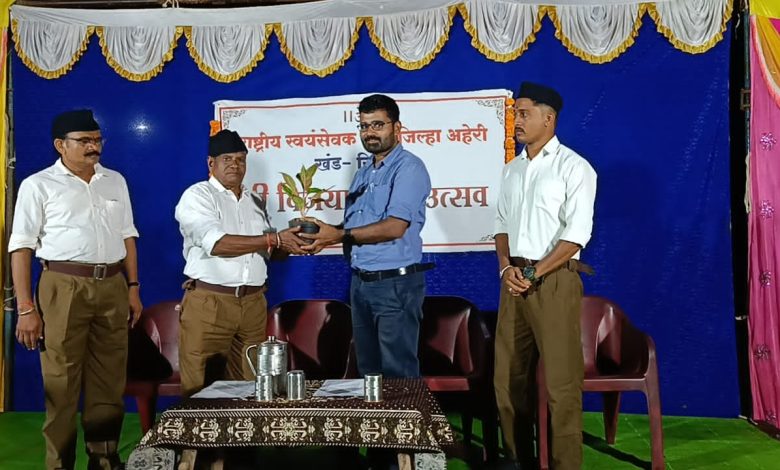 राष्ट्रीय स्वयंसेवक संघ सिरोंचा यांच्या वतीने विजयादशमी उत्सव व शस्त्रपूजन सोहळा उत्साहात संपन्न