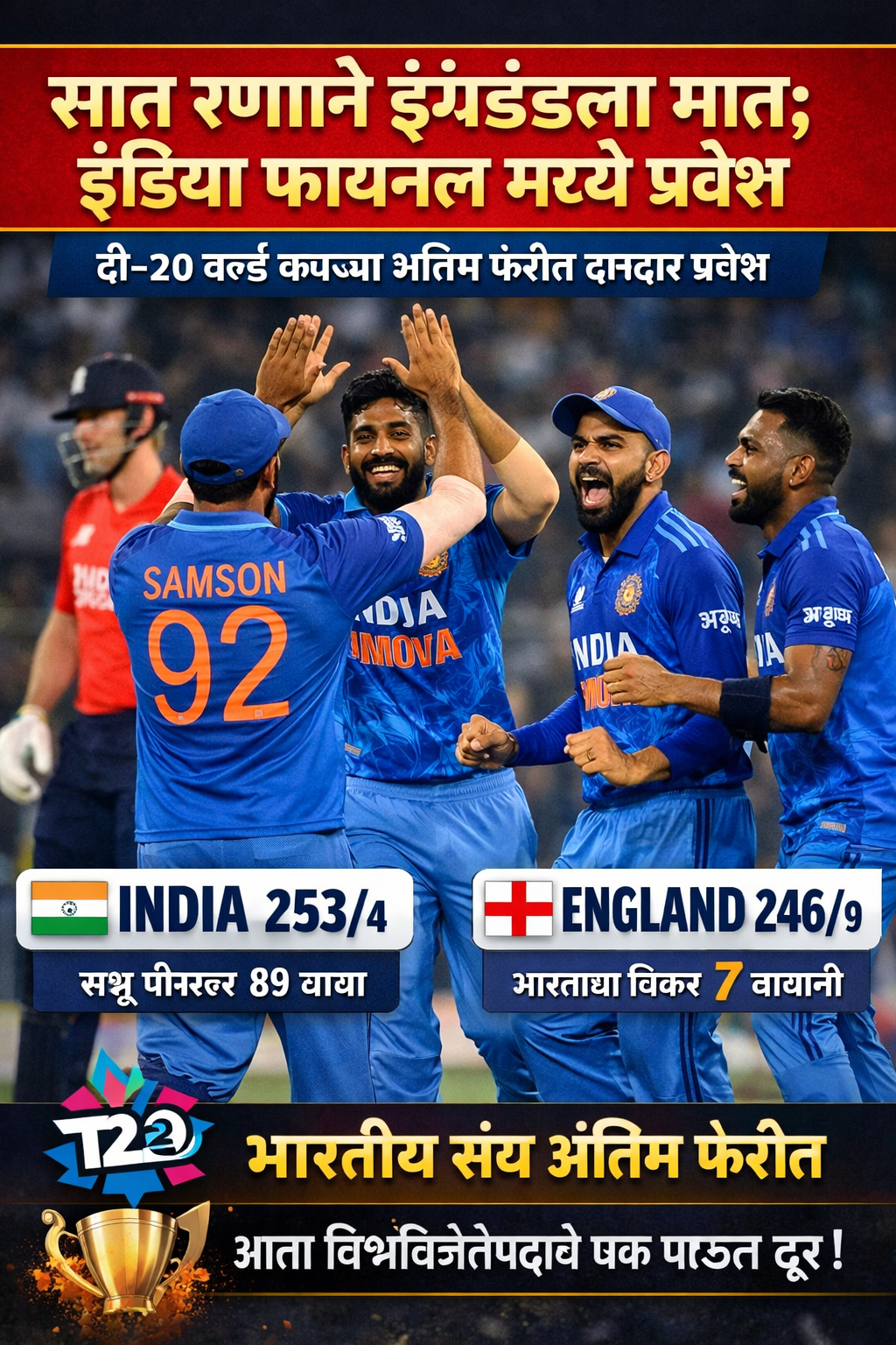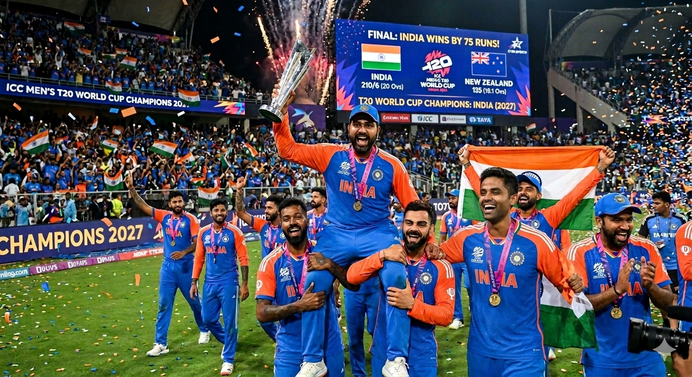 भारताचा विश्वविजयी जल्लोष! न्यूझीलंडवर 96 धावांची दणदणीत मात करत टीम इंडियाने जिंकला तिसरा टी-20 विश्वचषक
