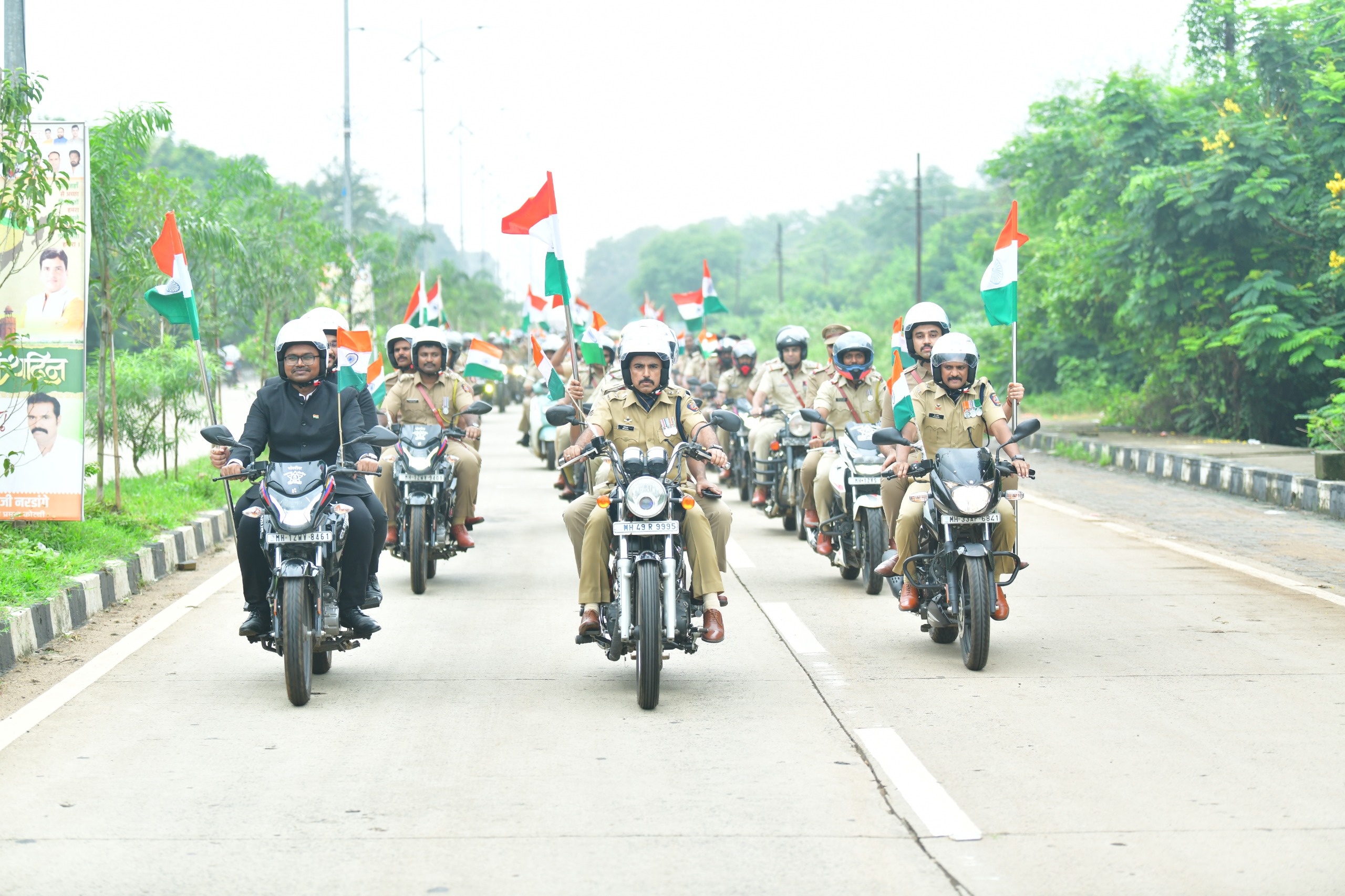 यानंतर गडचिरोली पोलीस दलाच्या वतीने भव्य तिरंगा बाईक रॅलीचे आयोजन करण्यात आले होते. या रॅलीचे मा. राज्यमंत्री तथा सह-पालकमंत्री गडचिरोली जिल्हा श्री. आशिष जयस्वाल यांच्या हस्ते उद्घाटन होऊन मान्यवरांच्या उपस्थितीत हिरवा झेंडा फडकवून रॅलीचा शुभारंभ करण्यात आला. सदर रॅलीसाठी गडचिरोली पोलीस दलातील वरिष्ठ अधिकायांसह एकूण 300 हून अधिक अधिकारी व अंमलदार सहभागी झाले होते. पोलीस मुख्यालय, गडचिरोली ते इंदीरा गांधी चौकापर्यंत आयोजित करण्यात आलेल्या या रॅलीचे आयोजन देशसेवा तसेच शौर्य आणि त्यागाचा संदेश सर्व नागरिकांपर्यंत पोहचविण्याच्या उद्देशाने करण्यात आले होते. सदर रॅलीचे शुभारंभप्रसंगी, मा. खासदार गडचिरोली-चिमूर लोकसभा मतदार संघ डॉ. श्री. नामदेव किरसान, माजी खासदार गडचिरोली-चिमूर लोकसभा मतदार संघ श्री. अशोक नेते, मा. आमदार गडचिरोली विधानसभा मतदार संघ श्री. मिलींद नरोटे, मा. जिल्हाधिकारी गडचिरोली श्री. अविश्यांत पंडा, पोलीस अधीक्षक, गडचिरोली श्री. नीलोत्पल, मुख्य कार्यकारी अधिकारी, जिल्हा परिषद गडचिरोली श्री. सुहास गाडे, अपर पोलीस अधीक्षक (अभियान) श्री. एम. रमेश, अपर पोलीस अधीक्षक (प्रशासन) श्री. गोकुल राज जी., सहा. जिल्हाधिकारी तथा प्रकल्प अधिकारी गडचिरोली श्री. रणजित यादव व सहा. पोलीस अधीक्षक, धानोरा श्री. अनिकेत हिरडे यांच्यासह अनेक वरिष्ठ अधिकारी उपस्थित होेते.