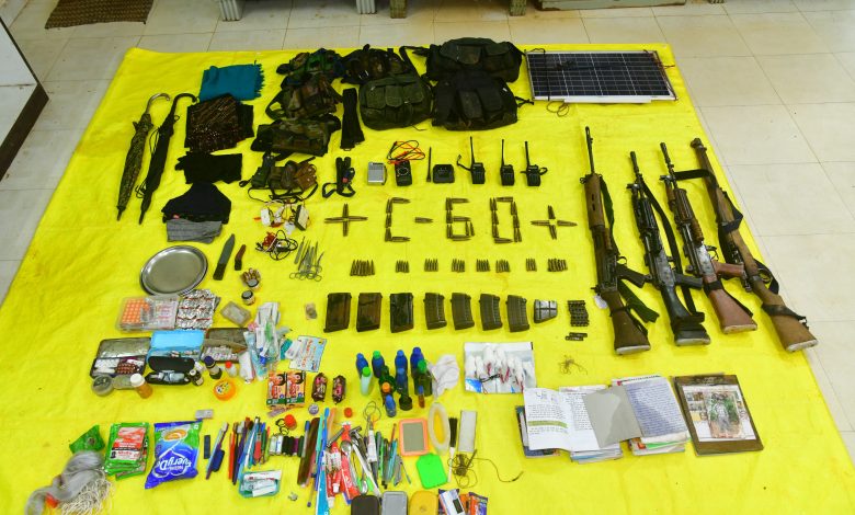 घटनास्थळावरून जवानांनी महत्त्वपूर्ण शस्त्रे आणि साहित्य जप्त केले –