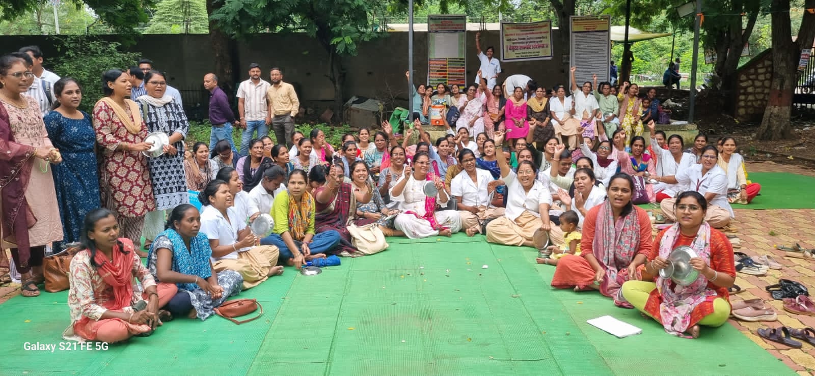 1. “महाराष्ट्रभर एनएचएम कर्मचाऱ्यांचा आवाज: नियमितीकरणासाठी आंदोलन सुरू.” 2. “कंत्राटी कर्मचाऱ्यांचा उपोषण – 10+ वर्ष सेवा, अद्याप नियमितीकरणाची वाट पाहत आहेत.” 3. “आरोग्य कर्मचाऱ्यांचा निर्धार: सरकारच्या निर्णयाची तत्पर अंमलबजावणी हवी.” 4. “राज्यभर पसरणारे आंदोलन: कर्मचाऱ्यांचा संघर्ष आणि जनतेचा समर्थन.” 5. “कर्मचार्यांचे बॅनर स्पष्ट सांगतात: ‘Regularization Now!’” 6. “वैयक्तिक संघर्ष आणि सामूहिक आवाज: महाराष्ट्रातील NHM कर्मचाऱ्यांचे आंदोलन.”